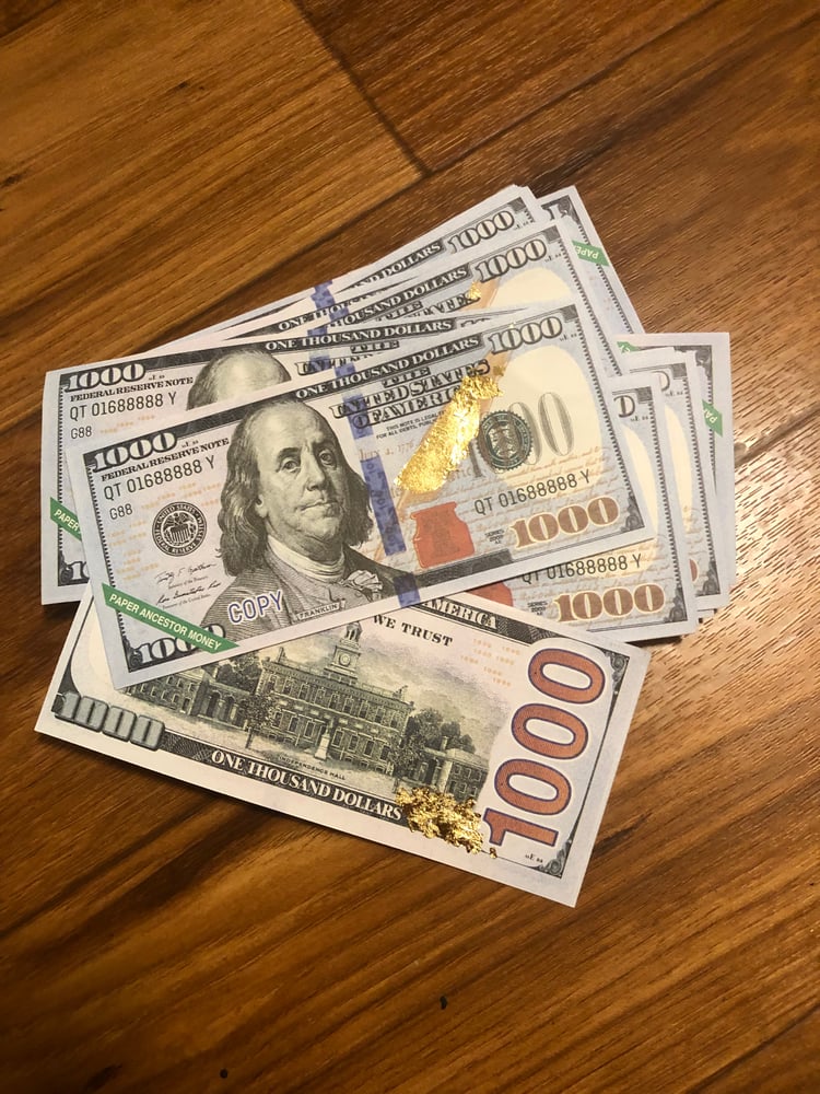 Twenty Five 1,000 Ancestor Money. This is not real money. Gold is set onto them with positive intentions. This Ancestors Money is cleanse with Sage and has sat on my personal alter to enhance and activate its gratitude power.