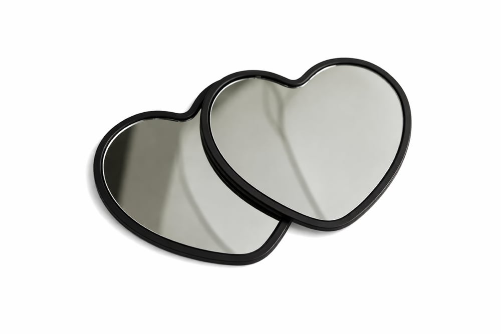 With its smooth black frame and reflective heart design, this piece is giving soft baddie energy with a touch of sacred self-care. Perfect for quick touch-ups, affirmations on the go, or just catching your reflection and remembering who tf you are 💅🏽