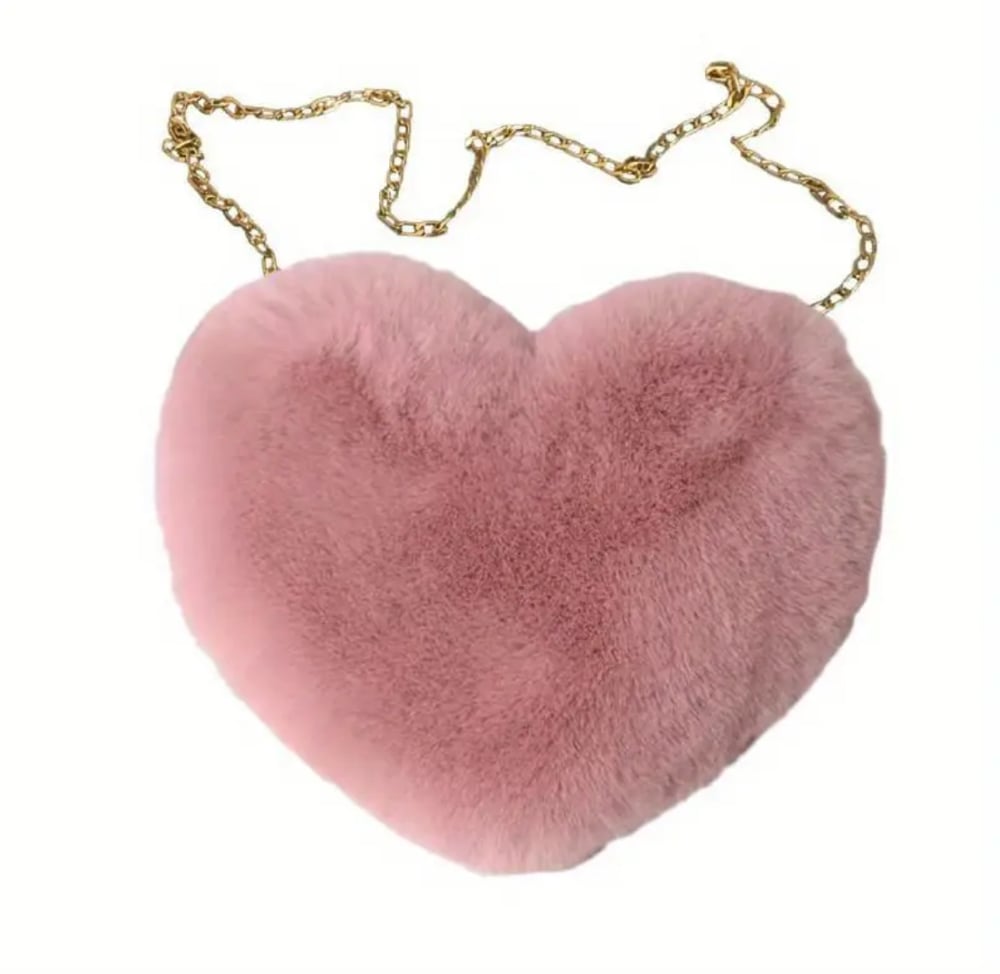 This plush heart-shaped purse is wrapped in luxe, velvety faux fur in a dreamy dusty rose tone, emo black, snowy white, and our popular vibrant red hue designed to turn heads while keeping your essentials close. The structured heart silhouette gives it a bold romantic energy, while the gold chain strap adds just the right touch of glam for day-to-night wear.